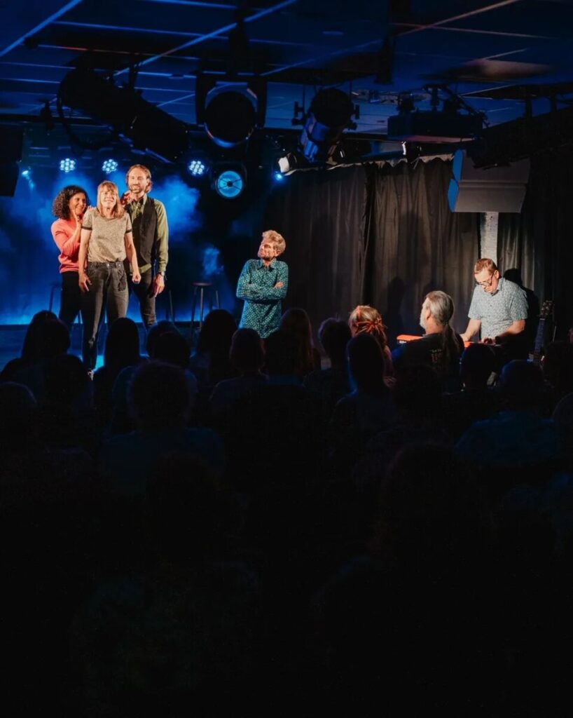Das Improvisationstheater 12 Meter Hase spielt auf der Bühne einen komplett improvisierten Krimi.
