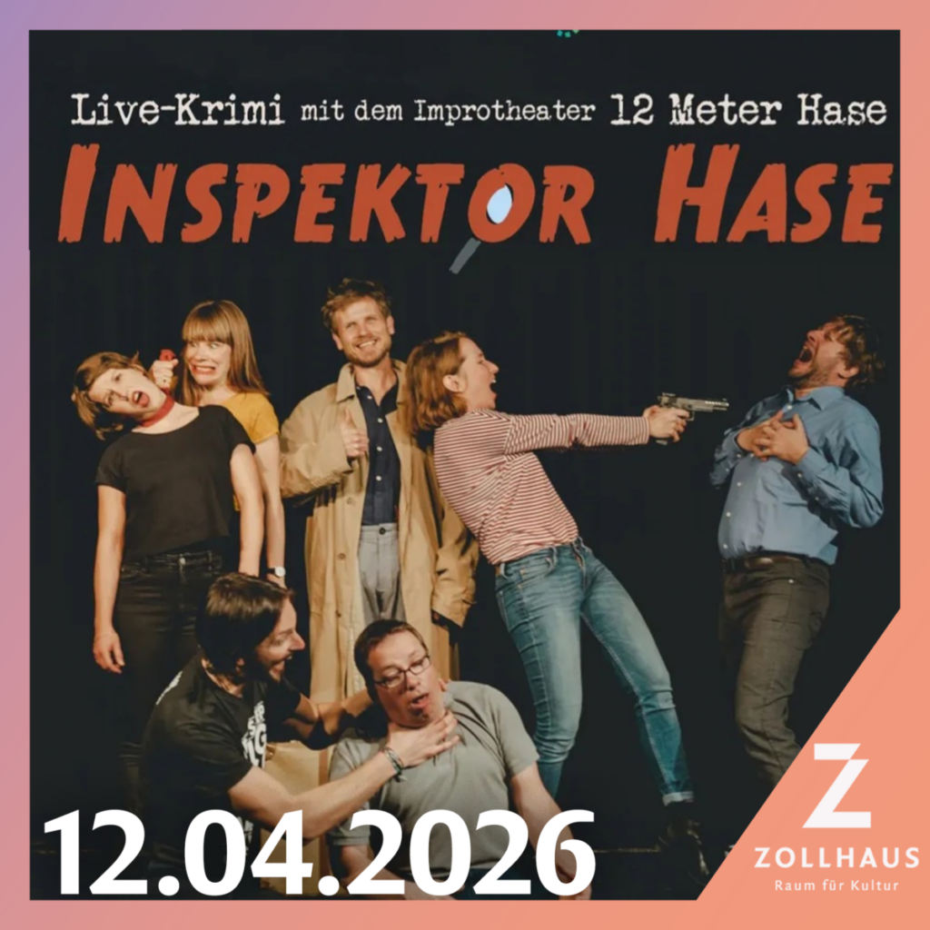 Inspektor Hase Das Improvisationstheater 12 Meter Hase spielt auf der Bühne einen komplett improvisierten Krimi. 12.04.2026 Einlass: 19:00 Uhr